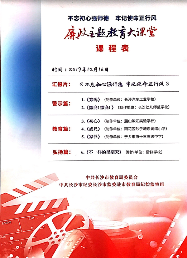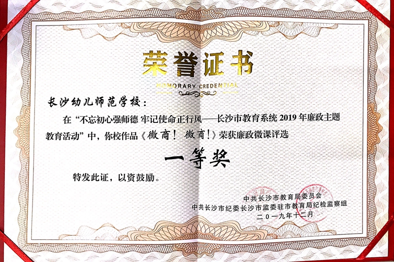 12月16日下午,长沙市教育局举办的“不忘初心强师德,牢记使命正行风”廉政主题教育大课堂活动在长郡双语实验中学举行。长沙幼儿师范学校制作、出品的廉政微电影《微商!微商!》从全市150余部作品评选中脱颖而出,荣获一等奖。
