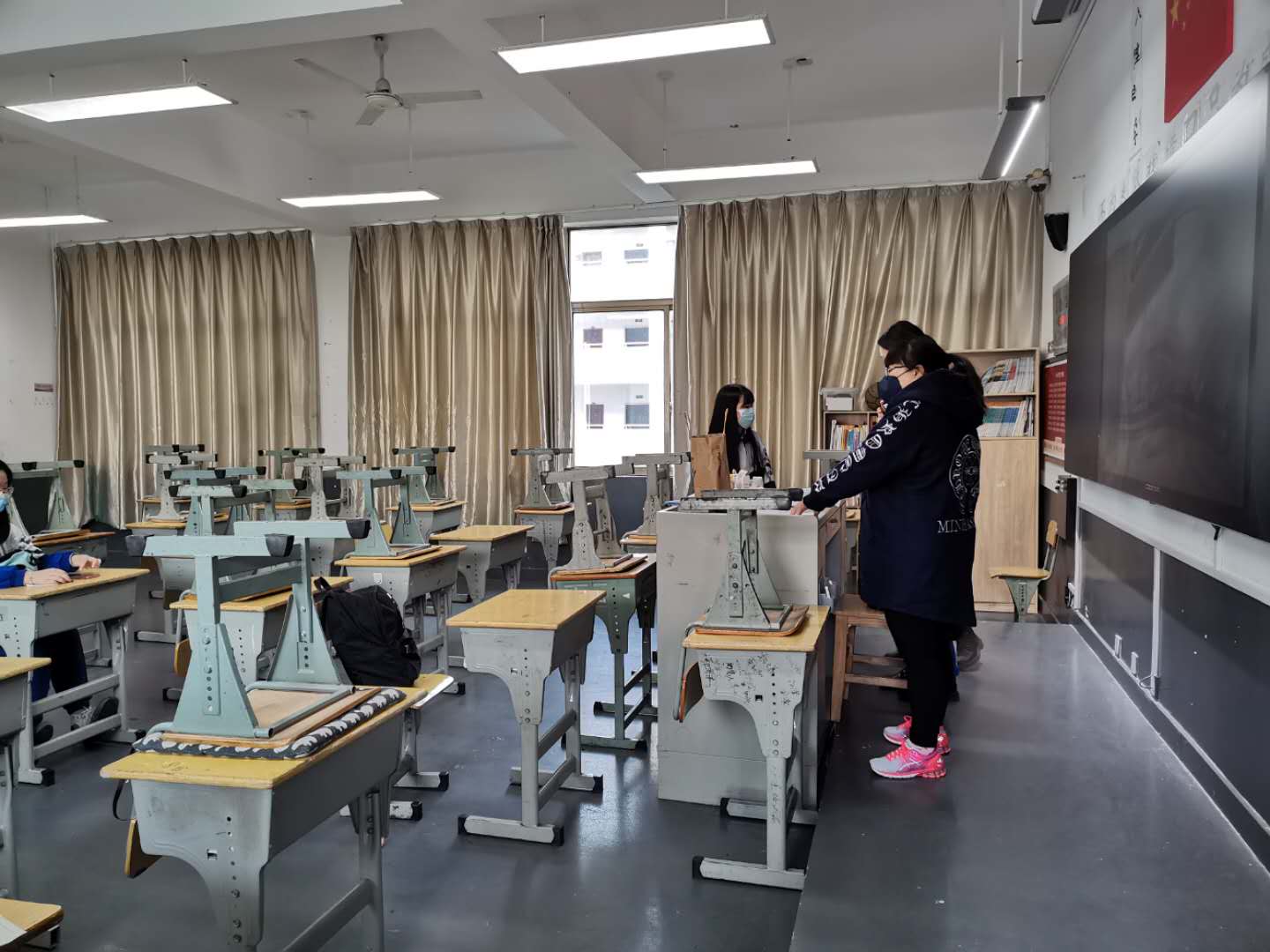 长沙市教育局副局长杨庆江、政策法规处处长周小青、职成处处长范霖一行来到学校对高三开学工作进行检查,对学校严格执行1米间距排队测温入校、在空旷的操场组织报名、分时分批错时错峰学习食宿,规划路线取餐就餐以及充足的物资储备、完整的功能室设置等表示了充分的肯定。