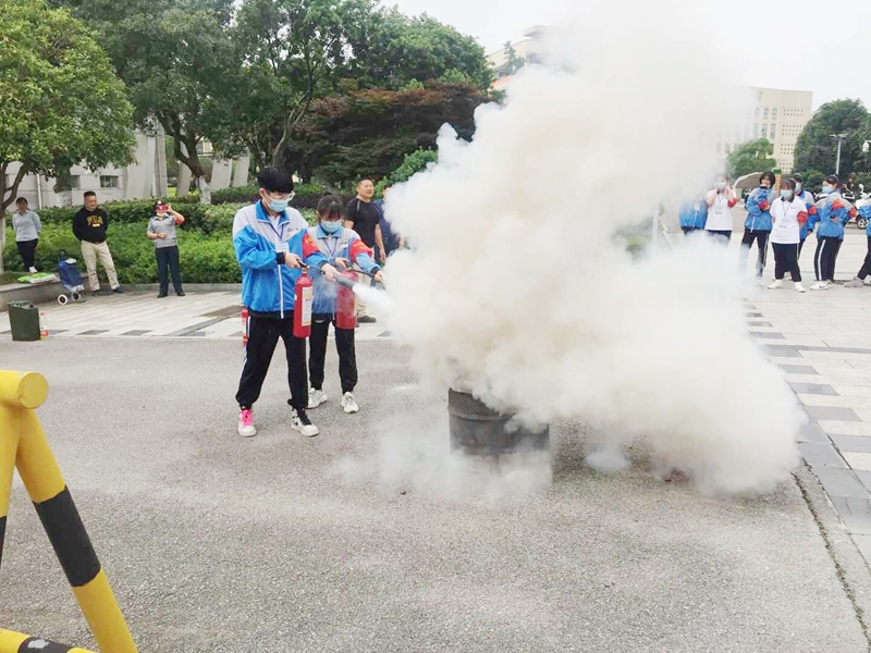 我校安全教育专干刘智勇对师生及物业人员进行的培训和演练贴近实战要求。首先,在职教基地报告厅安全讲座中分析校园内最易发生的火情案例,讲解干粉灭火器、二氧化碳灭火器、消防水带等各类灭火器材的使用方法及各种形式火灾扑救常识,还较大篇幅的普及传染病防疫、洪涝、台风、地震、风雹、地质、生物、生态环境、海洋、河流等各类灾害以及生产安全、火灾、燃气泄漏、一氧化碳中毒、溺水等事故的知识和防范应对的自救互救基本常识。随后,在屋外操场实际操作中进行的柴油类火灾扑灭演练,让大家掌握各种类型灭火器材的使用要领。接下来我校保卫科副科长戴申林指挥我校学生们进行了消防疏散模拟逃生演习。最后全体在场的师生员工及相关领导一起观摩了在我校保卫科示范指导下,安保人员进行的单人进攻与防范、多人合围,盾棍叉联动、徒手格斗等防暴反恐技能演练 。