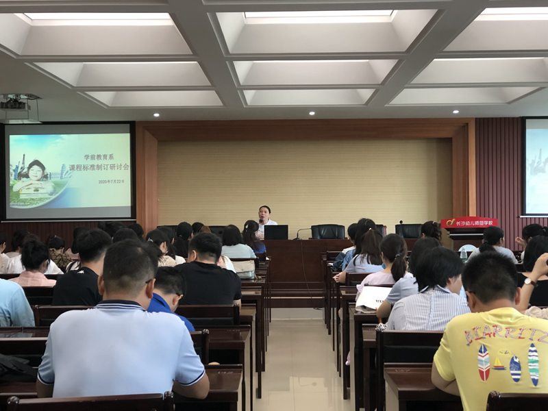 2020年7月22日上午8:30,学前教育系11位课程(群)负责人及45位课程标准制订团队成员齐聚神彩争霸8安卓下老版本道馨楼宁觉厅,召开课程标准制订研讨会。会议由学前教育系主任阳艳波主持。