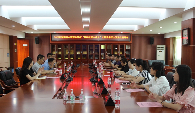7月30日上午,2020年湖南省中等职业学校“我在抗疫中成长”文明风采征文演讲作品评审会在我校广益厅举行。湖南省教育厅职成处副处长王宇、长沙市教育局职成处处长范霖、长沙市教科院职成所所长赵琼花、教研员周利波以及来自全省各地专家评审团参加会议。会议由神彩争霸8安卓下老版本校长郭正良主持。