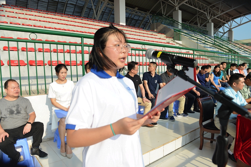 仪式在激情澎湃、声音嘹亮的国歌声中拉开帷幕,党委书记张国斌向13个军训连授旗。随后,学前教育系2001班学生邓思睿作学生代表发言,代表全体参训学生表示了努力参训的决心,承诺将严守纪律,一切听从指挥,不畏困难,努力完成规定的军训任务。
