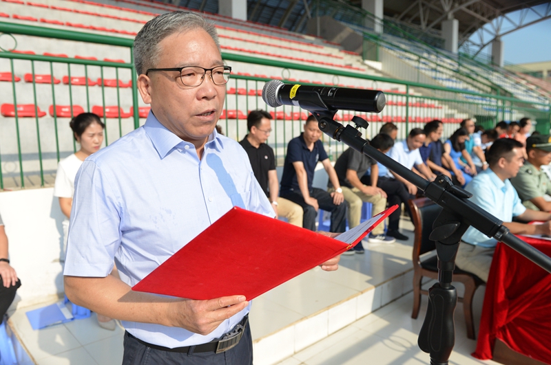 张国斌作动员讲话,向全体参训师生表示亲切慰问,向承担我校军训任务的教官表示衷心感谢,并对全体学生提出要求和期望。他强调,作为长沙幼专首届新生的2020级学生要明确身份、肩负使命,认真修好军训这门新生入门必修课,在艰苦的训练中磨练身心,学会战胜艰辛和困苦,团结互助共同成长,以自己的拼搏努力顺利完成军训任务,展现长沙幼专学子的青春风采。随后,全体参会人员观看了教官示范表演。