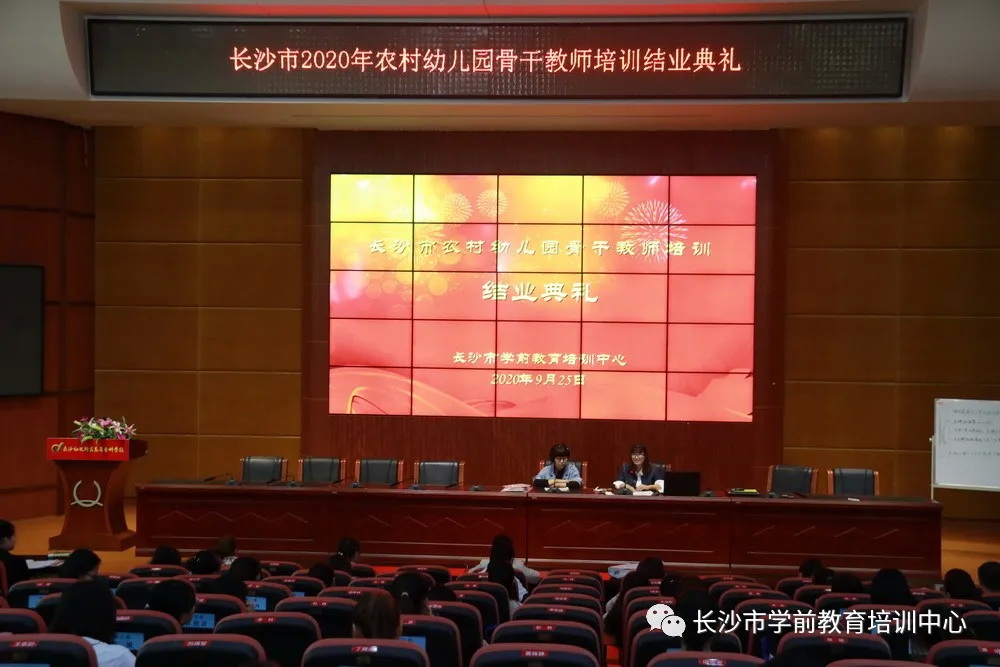 9月25日,长沙市2020年幼儿园骨干教师培训班结业典礼在神彩争霸8安卓下老版本汇智厅举行,来自长沙市各个区县(市)101名农村幼儿园骨干教师顺利结业。参加结业典礼的有培训中心曹婷老师和生活班主任周军老师,典礼由学习班主任丁香老师主持。
