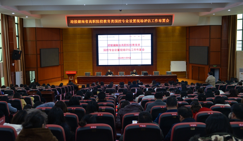 11月30日下午,我校在汇智厅召开迎接湖南省高职院校教育类国控专业设置现场评估工作布置会,会议部署了我校学前教育(五年制)、早期教育(三年制)两个专业迎接湖南省教育厅专业设置评估工作有关事宜。全体教职工参加会议,会议由党委书记张国斌主持。