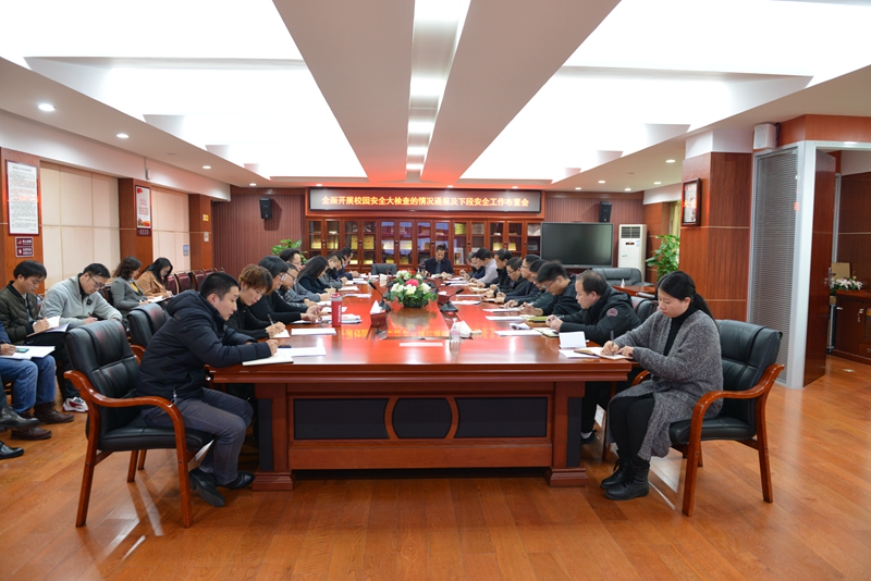 会上,文孟飞传达了省、市安全生产紧急视频会议精神及市教育局《关于深刻汲取耒阳“11.29”煤矿透水事故教训 全面开展校园安全大检查的通知》精神,并介绍了学校根据省、市关于校园安全工作的要求所采取的一系列加强校园安全管理的举措,制定了校园安全隐患排查方案和全员岗位安全生产责任制、完成了学生心理健康普测、开展了校园安全大检查等。通报校园安全大检查结果之后,文孟飞对下一阶段学校安全工作进行了安排部署,强调全校职工要高度重视安全工作,对于检查中发现的问题限期完成整改,齐抓共管,签订安全责任状,层层落实责任;加强安全宣传教育,在师生中全面开展安全主题教育,警钟长鸣,做到安全稳定工作无疏漏、无盲区、无死角,确保全校师生工作学习安全有序,学校各项工作安全稳定。
