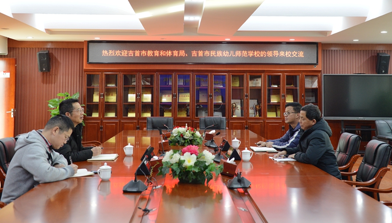 12月21日,吉首市教育和体育局工会主席张胜龙、吉首市民族师范学校副校长周平来我校访问交流。学校校长郭正良、党政办主任刘志华热情接待了来访嘉宾,两校在学校广益厅开展座谈交流。