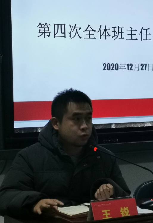 彭繁珍对大家近段的工作进行了充分肯定,主要围绕班级常规管理工作中的垃圾分类、疫情防控、学校大型活动、大学生管理及学生评价、学生安全管理、学生思想教育、元旦放假安排等七个方面工作进行了详实的总结及布置,特别表扬了艺术系杨平老师、2002班刘双老师、2004班李艳诘老师、1917班李剑波等老师在工作中不畏困苦、迎难而上、一心为学生更好成长的工作态度及取得的良好成效。最后对期末前学生管理工作进行了部署,提醒大家务必在期末考试前做好学生评语、班级总结与表彰、学生档案整理等工作。