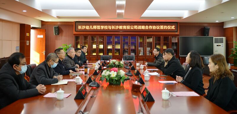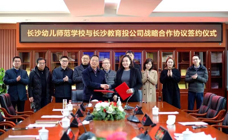 2021年1月19日,长沙幼儿师范学校与长沙市教育产业投资有限公司(简称市教育投)战略合作协议签约仪式在学校广益厅举行。学校全体领导班子成员、长沙市产投集团党委委员、副总经理兼市教育投党支部书记廖鹏、市教育投总经理张平等相关负责人出席签约仪式。学校党委书记张国斌主持仪式。