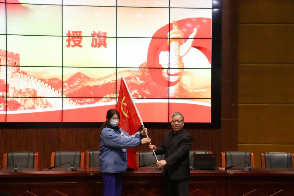 最后,张国斌把象征荣誉的旗帜授予学生会主席言梓灵,肩负新时代学雷锋使命的团员们整齐迈步,踏上“弘扬雷锋精神,献礼建党百年”之路。