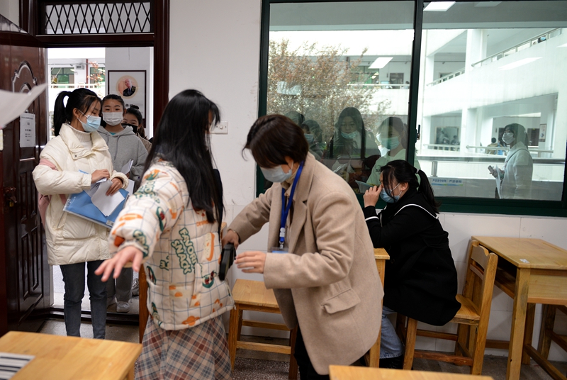 根据疫情防控要求,此次考试采用了分专业、分时段、多批次、小规模的考试形式,全程封闭考试管理,各测温通道和有关监测设备均有序运行,充分保证了考试工作顺利进行。