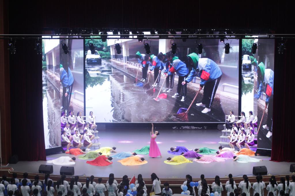1806班集体朗诵爱国主题诗歌《党旗下成长,青春中奋斗》,誓将以十八岁作为梦想的起点,带着热情与忠诚,深爱祖国跟党走。1804和1805班演绎歌舞《青春大概》,阐述了青春的活力,宣誓了奋斗的决心。