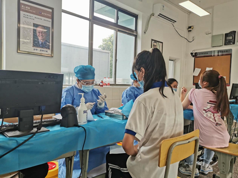 经过前期摸排、精细调研、方案制定、会议布置,学校明确了接种人员、接种时间和接种场所,沟通接洽后,联系鹤城医院到校接种。从宣传发动、场地布置、错峰入校、行进路线、人员安排、留观跟进等每一个环节,学校进行了多次研究、反复预演,确保有序安全,坚决做到接种零风险。