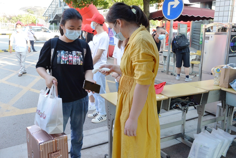 为保障迎新工作有序开展,学校高度重视,提前半个月召开协调会,研究部署迎新工作。在新生报到前、到校途中、入校后等阶段,学校多措并举做了大量细致贴心的工作。为确保新生及家长安全顺利到校,学校在火车站、汽车站安排了接站车辆。新生经过核验身份、测量体温、行李消毒等环节佩戴口罩进入校园。师生志愿者们热心地为新生指引路线、搬运行李,带领新生到指定地点报到,保障所有新生顺利完成报到。