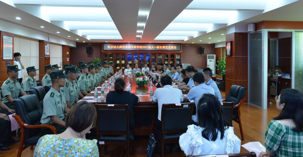 2021年9月15日下午,我校在广益厅召开2021级新生军训教官见面会。党委书记张国斌,副校长文孟飞,和相关处室负责人出席见面会,全体承训教官、全体新生辅导员(班主任)参加见面会。会议由文孟飞主持。