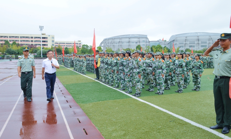 大会在庄严肃穆的升国旗仪式中拉开序幕,学校党委书记张国斌检阅了2021级受训新生。新生们昂首站立,高喊嘹亮的口号,展现军训成果,向学校领导、老师和承训部队的首长及教官们致以崇高的敬意和感谢。
