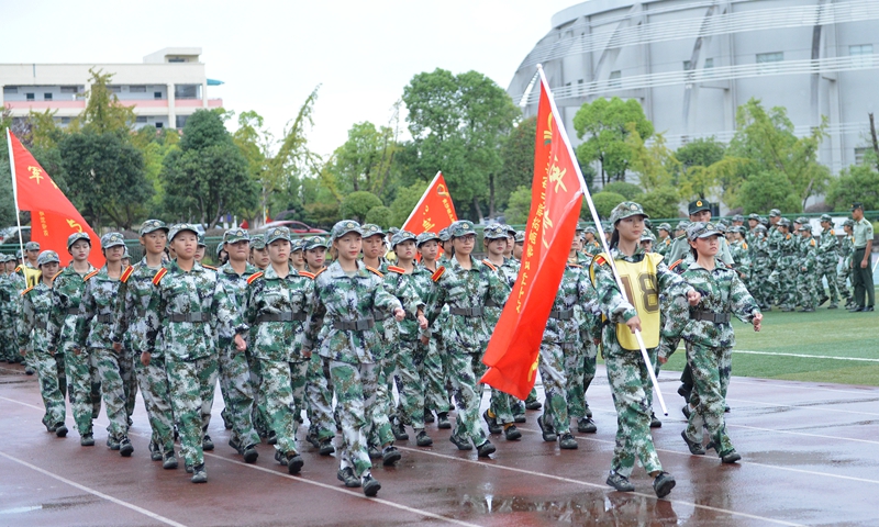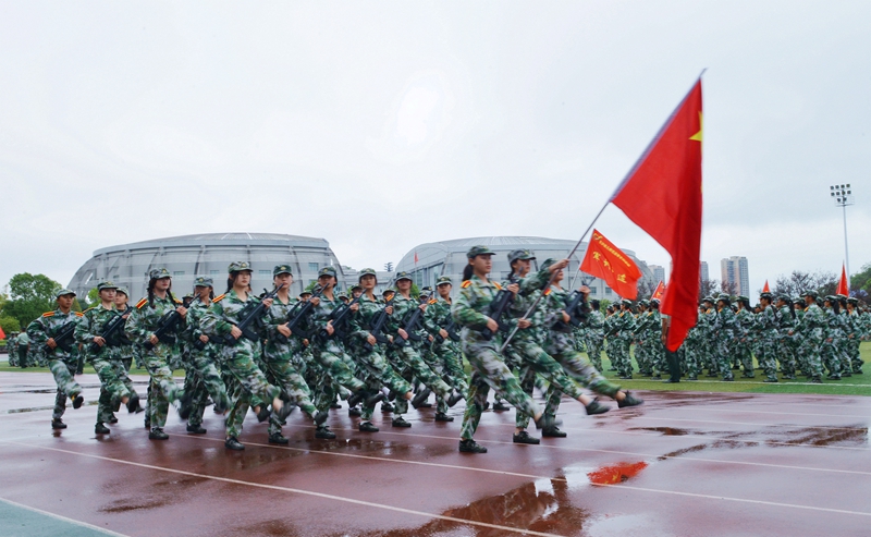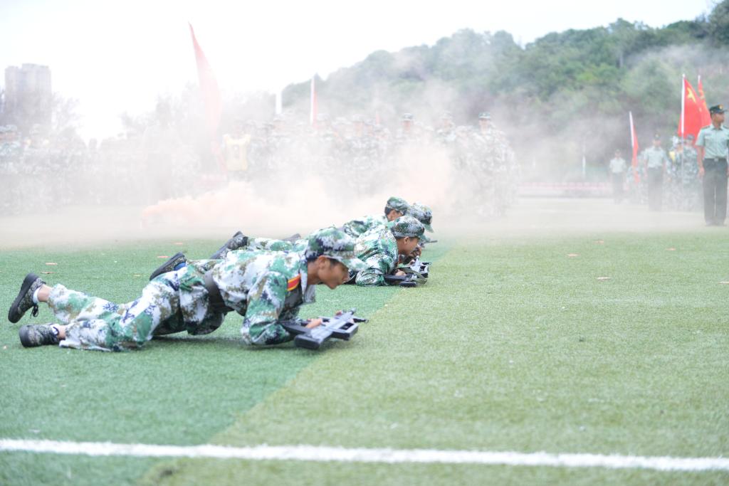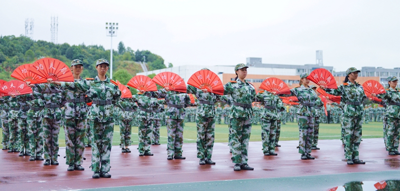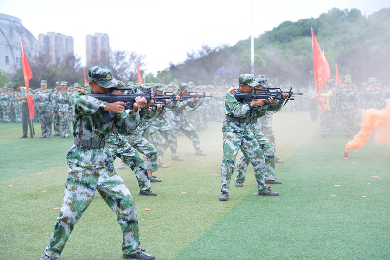 检阅完毕,军训分列式与会操表演正式开始,22支斗志昂扬的方阵,踏着军乐节点,昂首阔步依次通过主席台,豪情万丈的女子匕首操、刚柔并济的功夫扇、惊心动魄的战术演练、整齐划一的队列操、刚劲有力的军体拳等形式多样的会操表演充分展示了训练成果,参训的每一位新生都以激昂的斗志,挥洒着青春的誓言,用精彩表演迎来全场师生的阵阵掌声和喝彩。