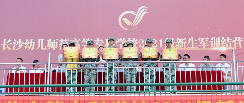 副校长周文华宣布优秀寝室、优秀学员、优秀志愿者、军歌比赛获奖班级和优秀连队名单,学校领导为获得先进的优秀个人和连队颁奖。
