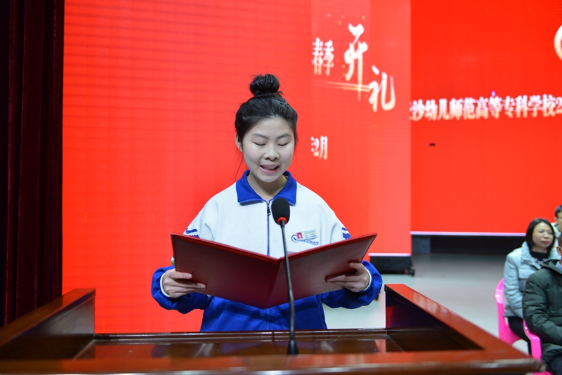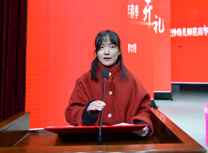 开学典礼在庄严的国歌声中拉开序幕。21级五年制舞蹈表演班周嘉欣作学生代表发言,她以“青年人应眼观世界,脚踏实地,树立鸿鹄之志,无愧历史担当”与同学们互勉,新学期要担责任、立勤学、强身心,在这个最好的时代镌刻出属于青年一代的使命烙印。学前教育系教师张薇表态发言,表示将一如既往地尽忠于国家的教育事业,认认真真上课,踏踏实实工作,教好书,育好人,并激励同学们带上理想与目标、自信与坚强、勤奋与努力开启新学期新征程。