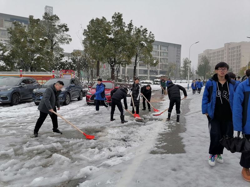 志愿者们带上工具出现在校园的各个主干道、师生出入食堂和宿舍的小路上,开展义务扫雪,及时清除积雪,确保交通安全和师生来往方便。大家躬着身子,握着扫把、铁锹、除雪铲,把雪扫到路的两旁,全力清扫东、西校区主要出入道路上的积雪。除雪工作持续了一个小时,职教基地各兄弟学校的师生志愿者主动加入,大家不畏寒冷、分工有序、配合默契、干劲十足。现场的每位志愿者都发扬了奉献、友爱、互助、进步的志愿精神,用自己行动谱写了爱的篇章,不仅为师生营造了一个方便安全的校园环境,更确保了师生的安全出行,路上的师生纷纷竖起“大拇指”,为志愿者们点赞。