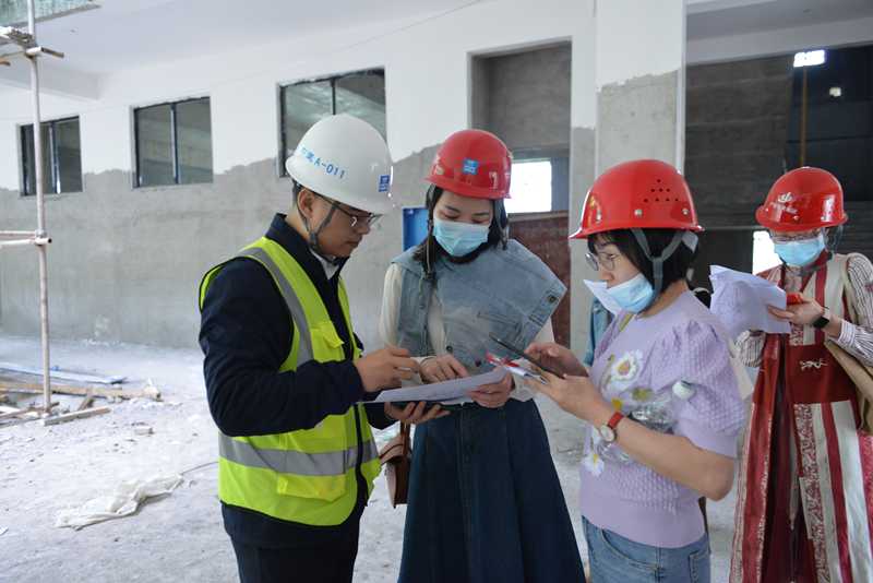 会后,学校领导班子实地查看了行政服务楼、共享教学楼、实验剧院等施工现场,各部门也深入相关楼栋开展实地考察,结合学校办学、教育教学、实训需求,分别积极与工程经理沟通,了解楼体建设和装修的细节,提出了修改设想。随后,双方再次集中召开了座谈会,将考察情况汇总,与建设设计施工方进行了讨论交流,现场落实整改方案。建设管理单位、施工单位现场表态,将在保证质量、重视安全的前提下,倒排工期,按要求整改到位,为后期学校设备设施的安装调试,学校的整体搬迁,以及建设项目的整体验收打好坚实的基础。
