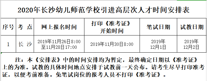 本次高层次人才引进采取在长沙设立考点的方式进行,人才引进工作拟定于11月下旬进行。