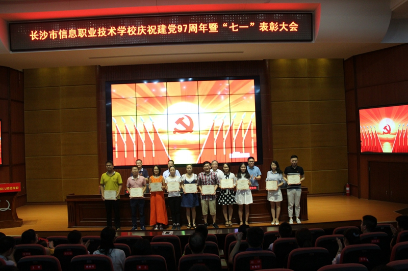 会前,全体党员认真观看了学校优秀共产党员事迹展播👌🏻。庆祝大会在庄严的国歌声中拉开序幕。副校长周文华宣读了表彰决定👌,授予周艳等24名同志“优秀共产党员”称号,授予赵万年等3名同志“优秀党务工作者”称号🙌🏻,授予第一党支部、第四党支部“先进党支部”称号,授予1603班“优秀共产党员示范班”称号,同时还表彰了在庆“七一”主题演讲比赛中的11名获奖选手👨‍💻,并颁发荣誉证书。