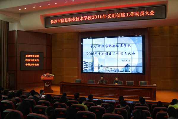 为贯彻落实长沙市教育系统2016年文明创建工作会议精神,积极配合全面、细致地做好文明创建工作,将文明城市、文明校园的任务要求落到实处,3月28日下午,湖南省宁乡师范学校(长沙市信息职业技术学校)组织全体教职工召开2016年文明创建工作动员大会,就文明创建工作进行安排部署。会议由学校校长郭正良主持。