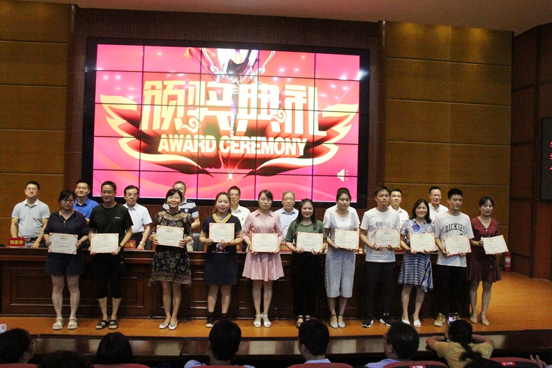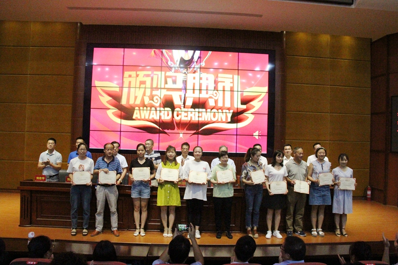 学生代表余新周、刘津希、汤文豪和后天乐四位同学的深情献词与诚挚祝福拉开了表彰大会的帷幕。首先,党委副书记兼纪委书记李慧中宣读《关于评选表彰2018-2019年度“文明之星”的决定》,欧阳华等15位老师被评为“乐于奉献的好员工”,尚明霞等38位老师被评为“学生满意的好老师”,周洁等11位老师被评为“我最喜爱的班主任”,全体学校领导为受表彰的教职工颁奖。