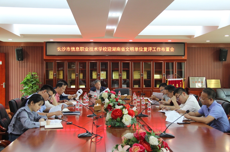办公室负责人何曙光传达了市文明办关于省级文明单位复查的通知要求,就学校《2018年湖南省文明单位复查方案》和《2018年湖南省文明单位复查责任分解表》进行了讲解说明,对迎检所需的工作汇报、审核材料、实地考察、问卷调查等工作进行了具体部署。