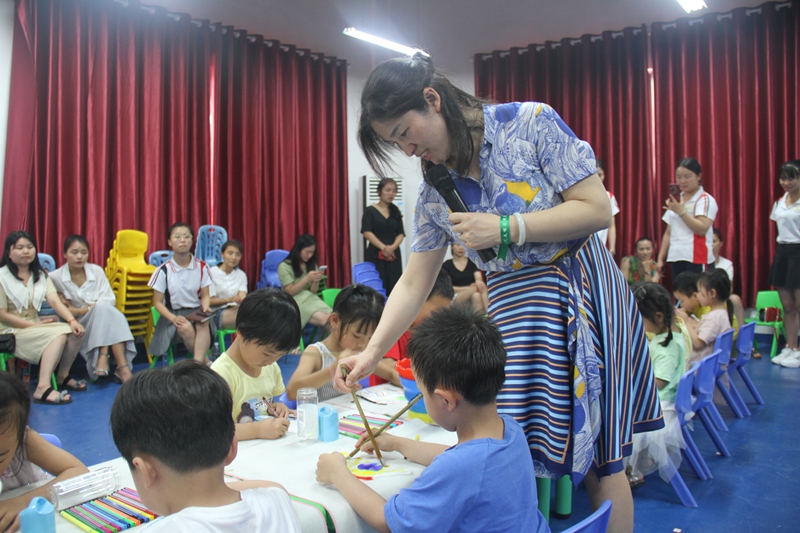 长沙市文化艺术教学研究会副理事长、我校学前教育专业带头人陈郁为大班孩子推送了一堂生动的幼儿美术活动示范课。她以“为蝴蝶公主绘制花衣裳”为情境,巧妙借助生宣纸、水彩笔、毛笔等工具绘制蝴蝶公主的新衣裳,引导孩子们探究生宣纸的特性并掌握色彩浸润的方法。在教学研讨环节,陈郁介绍了本堂课课程设计,对课堂情境设置及所运用的激励办法进行了解读,并对与第一次见面的小朋友建立良好互动关系的技巧和方法进行了分享。灰汤镇中心幼儿园张曼园长表示,这堂示范课为灰汤镇幼儿美术教学改革起到示范引领作用。