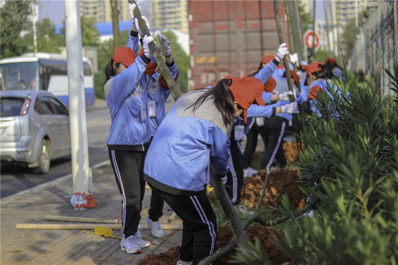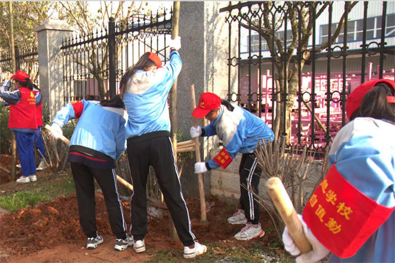 栽下一片新绿,共建生态文明。春回大地,万物复苏,3月12日,正值植树节,我校学生科、团委组织了30余名师生志愿者前往雨花区义务植树点展开了主题为“大手牵小手 共建长沙蓝”的学雷锋志愿服务活动,志愿者们用双手和汗水帮助一棵棵树苗在长沙“安家落户”,为蓝天保卫战献出自己的一份力。