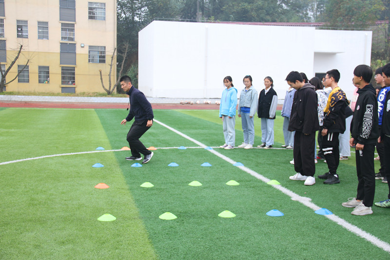 为确保此次送教取得良好的效果,校团委提前和灰汤中学进行了沟通交流,王潇翔有针对性地选择授课内容,并进行了精心准备。课程内容为《球性与球感练习》,课程开始,王潇翔带领学生通过小游戏传球接力和脚步快速移动进行热身运动,接下来,王潇翔系统讲解并示范了原地踩球、原地绕圈踩球、原地左右脚交换拨球、原地左右脚脚底拉球、行进间踩球等动作要领,对学生提出了具体练习次数和方法要求。学生一边进行练习,教师一边在旁进行指导纠错,帮助学生在最短时间内学会正确的动作。在随后的练习中,王潇翔利用标志桶和标志盘在足球场大禁区内设置若干个目标点,要求学生在规定时间内使用之前练习的内容运球完成全部目标点,这不仅能够将学生当堂课所学的知识运用到实际场景中,还对学生的观察和预判能力提出了一定的要求,既锻炼了学生的运动技能,又培养了心智。在评课环节,灰汤中学李校长和体育教师对本次课堂给予了高度的评价,对我校带来的先进的体育课堂教学理念和方法表示衷心的感谢。
