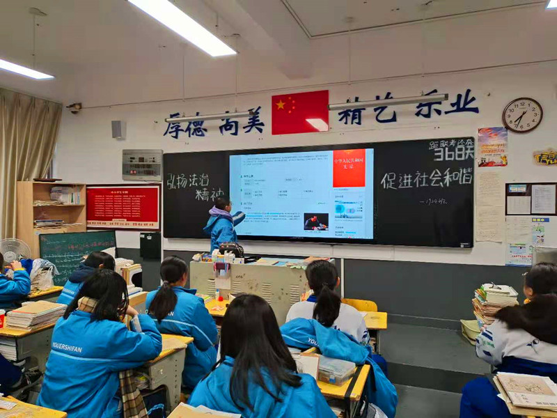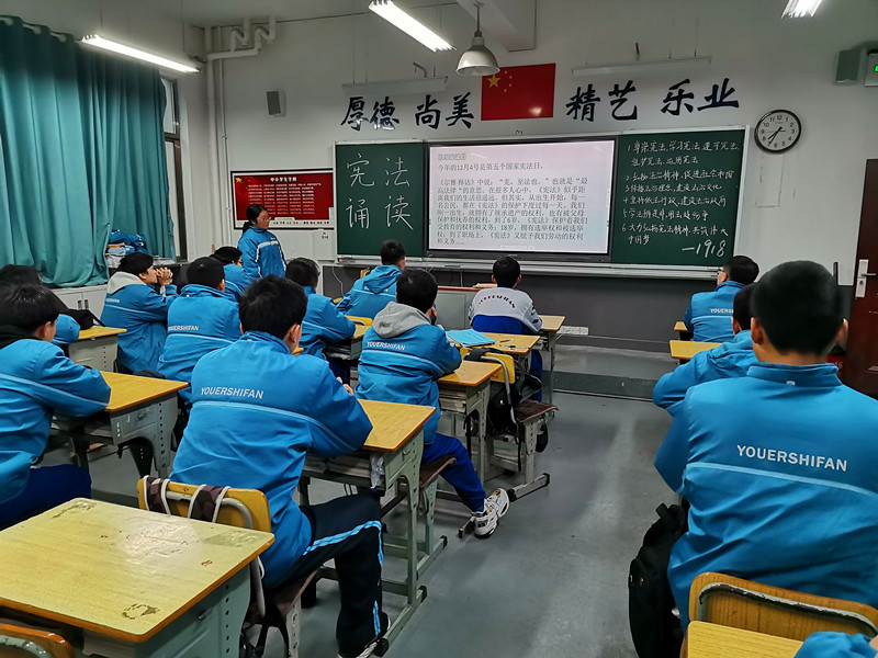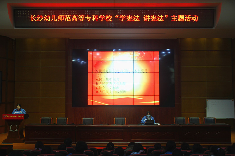 12月2日上午7:30,全校各班利用早自习时间组织了“宪法晨读活动”,选择宪法的相关条款让学生进行朗读。当天中午校团委牵头,由校团委学生会活动部策划主办的“学宪法,讲宪法”活动在学校汇智厅隆重举行。活动伊始,观看《宪法的制定和认识》视频。通过视频,全体学生了解到:宪法是国家的根本大法,是规定一个国家的社会制度和国家制度的基本原则,规定公民的基本权利和义务等重要内容。同时,宪法具有最高法律效力,是制定其他法律的依据,一切法律、法规都不得同宪法相抵触。紧接着,进行了“宪法知识问答”比赛。全体学生认真思考、积极参与答题,现场气氛非常活跃。之后,讲述“宪法小故事”。通过故事,让学生知晓宪法是神圣不可侵犯的。同时,也警醒着学生:切勿做出违法犯罪的事情。随后,校团委副书记祝居里,与全体学生一起学习了宪法的地位和意义。祝书记号召大家要“学习宪法、宣传宪法、遵守宪法、维护宪法”。在接下来的两周中,我校还将通过班会、手抄报、海报、黑板报、征文等多种形式,大力营造宪法教育活动的浓厚氛围。活动最后,进行隆重的宣誓环节。全体师生右拳紧握,共同庄严宣誓:以遵纪守法为荣,以违法乱纪为耻,做一名学法、用法、守法、护法的社会主义接班人。宣誓之声铿锵有力,响彻汇智厅,全体师生热血沸腾。