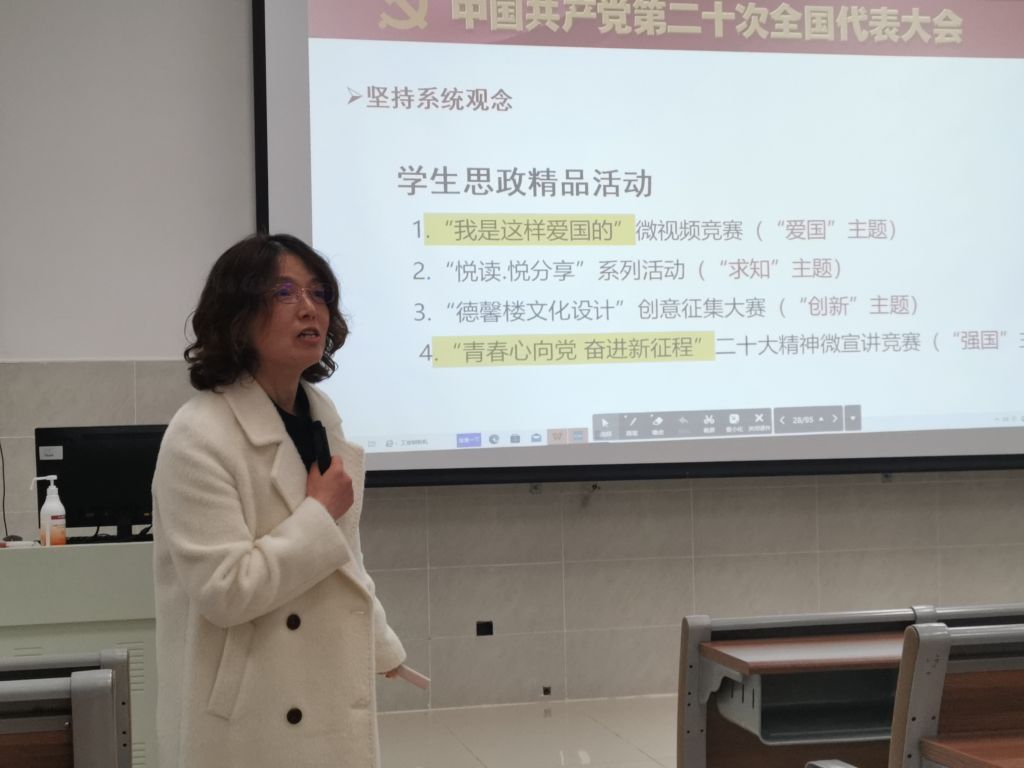 李立华对党的二十大精神的主题及报告进行了全面的梳理🆘,先后从马克思主义行的立场、观点👨🏻🔧、方法等方面做了详细的阐述。她结合学校实际👨🎨、融合自身经历与经验🧖♀️,围绕中国化时代化的马克思主义行的“六个坚持”对思政教育工作者提出了相关建议🚣🏻👡,她希望大家坚持以“学生”为中心,深入学生、关心学生🤵🏽、指引学生;坚持自立自信,开创具有我校特色的立德树人模式;坚持守正创新,在实践中研究✷,在研究中提高实践能力;坚持系统观念,打造以“爱国、求知、创新、强国”为主题的系列学生思政精品活动,形成独具师范院校的“楚怡精神”文化。