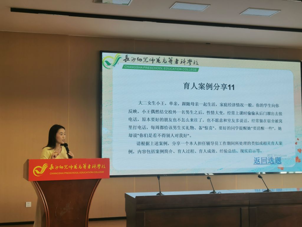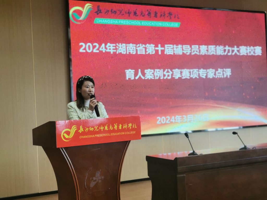 比赛现场精彩纷呈,在育人案例分享过程中,各位辅导员生动的展现了“离学生最近、最重要的人”如何以科学的育人理念、用最深的爱和耐心、用最恰当的方法传播思想、传递温暖,进而解决学生的实际困难与问题。该赛项结束后,湖南师范大学心理健康教育专家刘宓蜜评委进行了点评,她对参赛辅导员的表现表示充分肯定,并结合自身参赛和工作经验,先后从思政育人、心理健康、以赛促学的角度进行了细致的解析、交流和具体建议。