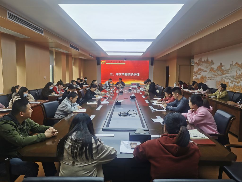4月9日下午,我校全体学工人员月度工作会议暨辅导员素质能力提升专题讲座在道馨楼420会议室进行。副校长周文华出席会议,学生工作与安全保卫处、团委全体人员、各二级学院党总支书、德育副院长、学工干事及全体专兼职辅导员参加会议,会议由学生工作与安全保卫处处长彭繁珍主持。