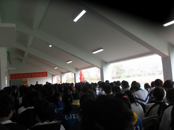 4月8日上午十时,我校学生会四十余名干部,在学生科刘建乐科长的带领下,参加了长沙职教基地医务室揭牌庆典大会。