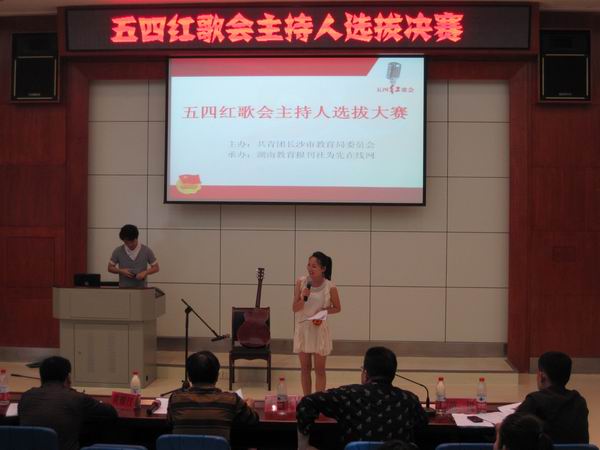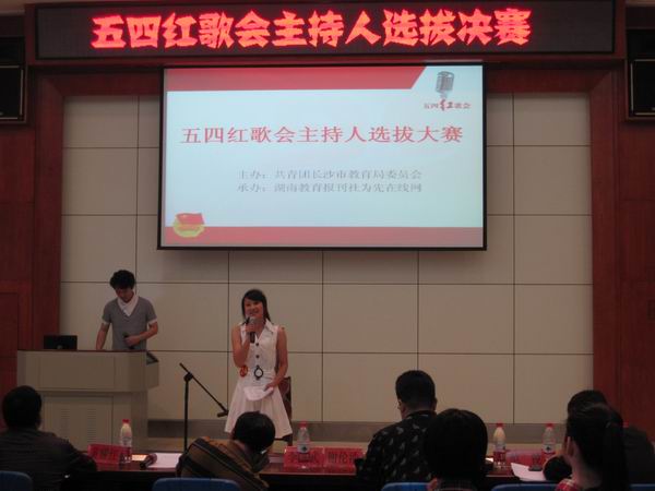 2011年4月25日下午,长沙市信息技术学校组队参加长沙市教育局举办的“五四红歌会”主持人选拔赛,在预赛中胜出的李丹、廖向阳两位同学参加了此次比赛,并与来自长沙市其他学校的34名选手进行角逐。