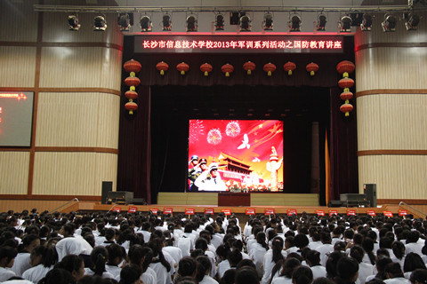 为进一步激发学生爱国热情,普及国防知识、增强国防观念和提高自我防护意识🧑🏻🤝🧑🏻,加强学生责任感,配合当前学校正在如火如荼展开的新生军训,8月27日晚长沙市信息学生科🌛、团委举行了国防教育讲座❓,本次讲座邀请到国防科技大学人文学院杨国锦队长担任主讲,我校1000余名新生聆听了此次讲座。