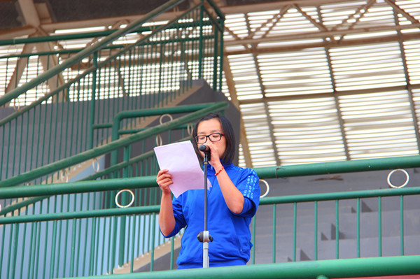 体育组黄腾云老师现场宣读广播体操比赛规则