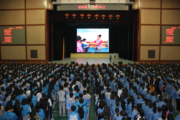 为了让学生懂得接受别人的帮助是幸福,而帮助别人会给自己带来精神上的愉悦,从而在校园内形成人人互帮互助的良好氛围,激发更多的同学践行“善行义举”。3月30日,1307班喻文杰和肖湘恒同学在汇美馆升旗仪式上发表了主题为“帮助别人,快乐自己”的国旗下讲话。