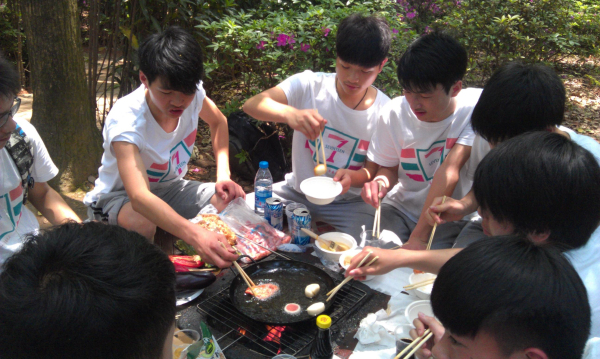 早上八点,六个班级在中央操坪集合。临行前,学生科陈郁科长再三叮嘱外出注意事项。八点三十分,各班级陆续到达目的地——南郊公园。集合完毕后,部分师生前往附近超市采购食材,其余师生整队前往烧烤园。十点左右,各班级菜品、配料、烧烤必备用具均已准备齐全,师生们分工合作,用心投入烧烤活动之中。