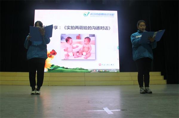 她们首先播放了一个《实拍两萌娃的沟通对话》的视频,视频中两个萌娃咿咿呀呀的对话引人深深思考:沟通是什么?为了解开这一谜团,1409班自拍“校园调查”视频,从“沟通是什么?平时和谁沟通最多?与同学沟通最大的难处是什么?”三个问题采访各个同学,不同的同学都有不同的看法。成敏和何钰琪同学总结了大家的意见,得出在沟通过程中,好的沟通要领是主动热情,宽容谅解,认真倾听,特别提到了要文明用语,礼貌待人。接着,她们又提出”如果没有良好的沟通会怎么样?”这个问题,然后以一个《暴力语言会变成武器》的视频告诉大家暴力语言的危害性,尤其是对未成年人心理的伤害。视频中通过一个用“猪脑子”“怎么不去死”等暴力语言做成的实体拼装游戏让现场的学生意识到暴力语言带来的伤害是十分巨大的。然后用某市少管所青少年们的自述告诉大家暴力语言很大程度上会造成青少年的心理扭曲。其中提到的一场因“口角争执”而导致的校园暴力事件给大家敲想沉重的警钟。最后成敏和何钰琪同学呼吁大家要文明用语,礼貌待人。