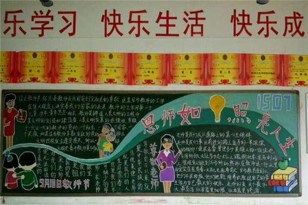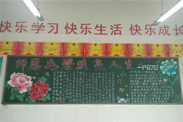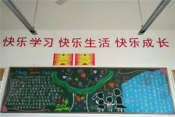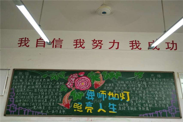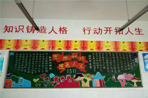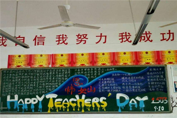 在黑板报绘制过程中,有些同学展现了自己出色的绘画才能,有些同学则充分利用了自己平时收集的素材,通过同学们的精心设计,单一的黑板变得色彩纷呈,无不凝聚着同学们真心祝福,表达了他们对老师的尊敬和深深的祝福!