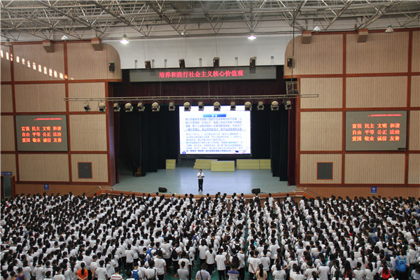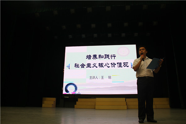 最后王老师通过两个题目,培养大家碰到负能量时多问几个“为什么”的好习惯,现场同学们和王老师一起互动,很快同学们也掌握了这个方法。结束时他倡议全体同学用心践行社会主义核心价值观,同时也向同学们提出了“心向阳光、自信成长”的希望。