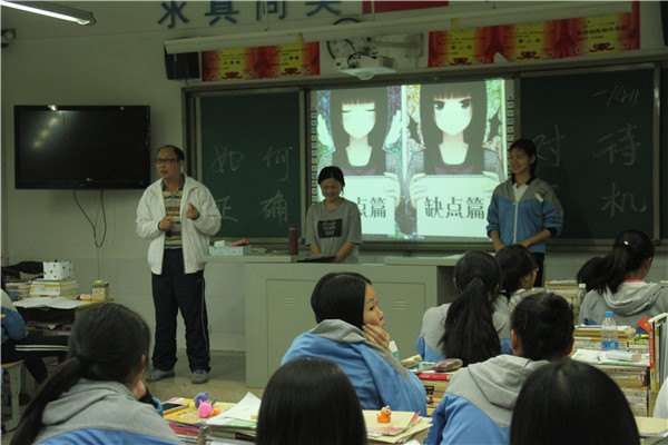 一个会控制自己的人,才是一个成功的人”自制力是每个人都需要的。本次班会进行地有声有色,1409班、1405班通过心理测试的方式测试各自的自控力作为引入;1604班、1617班、1610班、1601班开展关于使用手机利弊辩论赛,再深入自制力的话题探讨;1403班作为最看重身材的舞蹈班,采用了分享你的减肥历程,并总结出自制力的重要性;1605班对班会现场进行了精心的布置,并通过心理测试、提问引入、游戏、小品、辩论赛、分享身边的榜样等劳逸结合的流程有效的实现了该主题的效应。1501班、1608班、1513班师生共同参与,提供了历史上和现实生活当中令人敬佩的自制力强的人和事让大家学习。1602班设置新颖的奖项激励同学们参与班会活动。