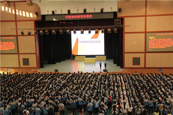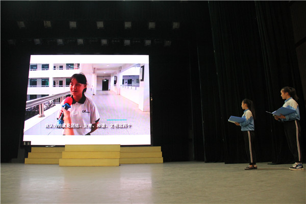 紧接着,播放了前期录制的视频“同学们心目中的班集体荣誉感”,该视频落脚点非常到位,通过采访同学们的想法,稳稳抓住了主题中心,起到升华作用。