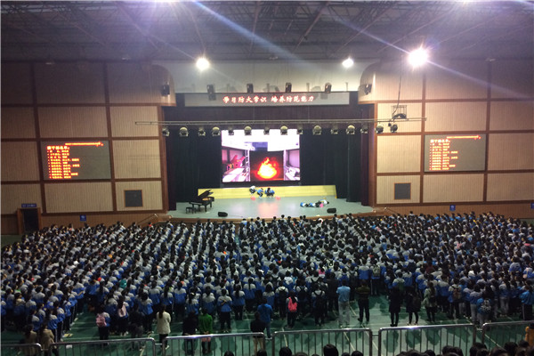 此次国旗下讲话,先由一个舞台剧引入,舞台剧中交代学生回到宿舍后使用热得快烧水,因无人照看引发火灾,等发现起火后不懂的妥善处理,有人泼水触电晕倒,有人大声呼救呛烟昏倒,有人跳楼逃生死亡,舞台上演员卧倒一片。