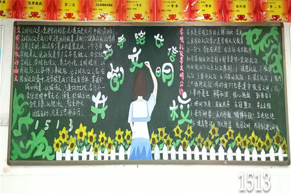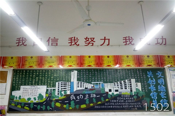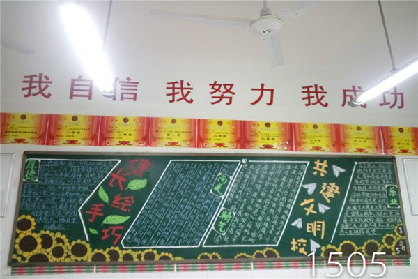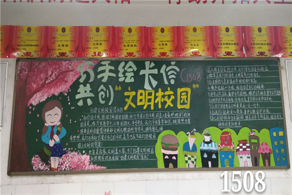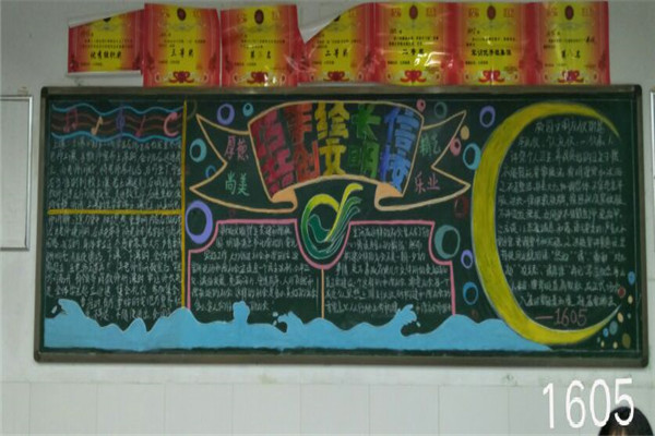 本次黑板虽然时间仓促,但是全校效果较好,特别是1502班描绘的校园立体感十足,1513班布局合理,色彩分明,1605班作为一年级的班级也好不逊色,有独特新颖的版面设计优美生动的文字图画;其次,1505、1508、1510等班级创意十足的色彩搭配、主题明确,吸引人的眼球,希望各班相互学习共同进步。